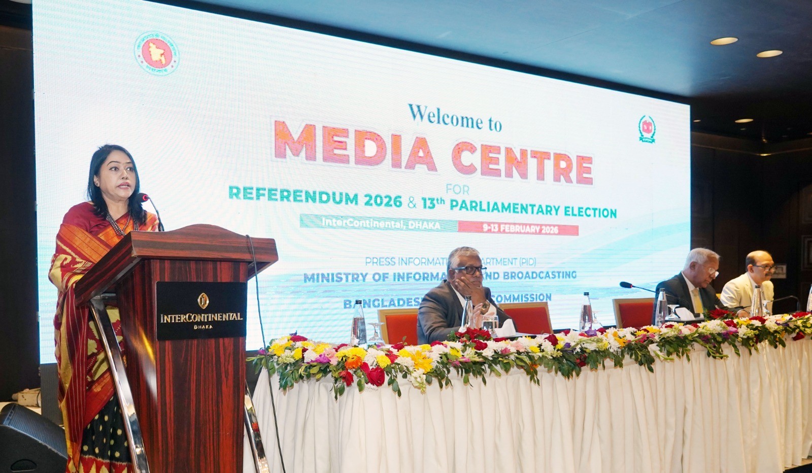 তথ্য ও সম্প্রচার মন্ত্রণালয়ের সচিব মাহবুবা ফারজানা সভাপতির বক্তৃতায় বলেন, এই মুহূর্তে দায়িত্বশীল সাংবাদিকতা জাতীর জীবনে অত্যন্ত গুরুত্বপূর্ণ। এই নির্বাচন শুধুমাত্র একটি রাজনৈতিক ঘটনা নয়; জাতির আশা-আকাঙ্ক্ষার প্রতিফলন। নির্বাচনকে স্বচ্ছ ও সুষ্ঠু করার ক্ষেত্রে আমরা সবাই প্রতিজ্ঞাবদ্ধ। এপর্যন্ত নির্বাচন উপলক্ষ্যে ১৯টি দেশ থেকে আমাদের এখানে সাংবাদিকরা এসেছেন। তাদেরকে সহায়তা করা ও নিরাপত্তা বিধান করা আমাদের দায়িত্ব। মিডিয়া সেন্টার থেকে তাদেরকে নির্বাচন ও গণভোট বিষয়ে তথ্য সরবরাহ করা হবে। সচিব বলেন, বিদেশি সাংবাদিকদের সহযোগিতায় মিডিয়া সেন্টারে প্রয়োজনীয় লজিস্টিক সাপোর্ট রাখা হয়েছে। সাংবাদিক ভাইদের জন্য নির্বাচন কমিশন থেকে একটি গাইডলাইন প্রকাশ করা হয়েছে। আশা করছি সবাই এটি অনুসরন করবেন।